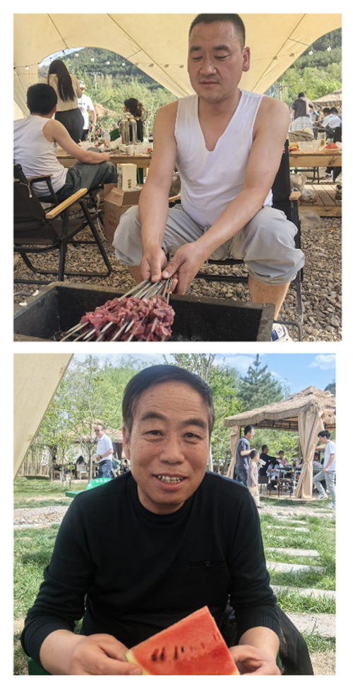 登頂后的喜悅尚未褪去,大家便奔赴西溝村A露營(yíng)基地,開啟超治愈的燒烤派對(duì)!鮮嫩的肉串在烤架上滋滋作響,香氣四溢;金黃的雞翅、新鮮的蔬菜,在同事們的協(xié)作下變成一道道美味佳肴。有人化身“燒烤大師”大展廚藝,有人主動(dòng)負(fù)責(zé)后勤保障,歡聲笑語與煙火氣息交織,勾勒出“振興大家庭”的溫暖畫卷。